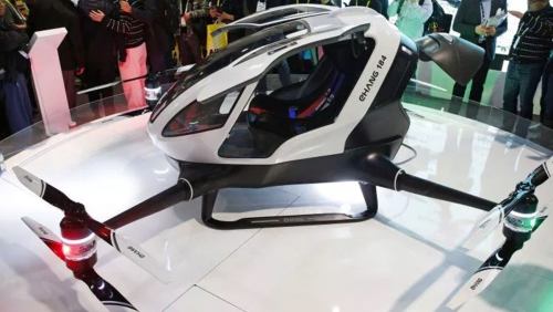 Business News First Autonomous, Human-Sized Drone Revealed at CES The EHang184 can carry one passenger for flights up to 23 minutes.