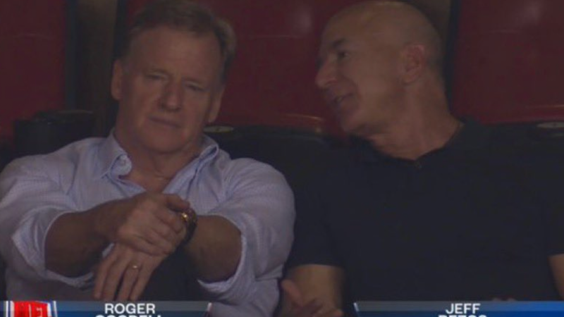 The Amazon founder and NFL commissioner sat next to each other during the first Thursday Night Football game of the season.