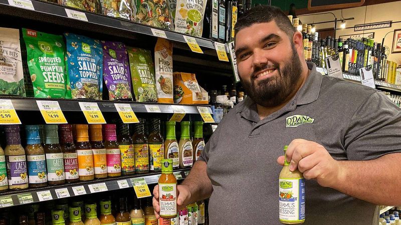 But a curious thing was happening at the farmers’ markets. Customers said they were putting O’Dang Hummus on their salads as a dressing. Wolfe tried it and loved how it tasted — but the hummus was too thick to really work. So he whipped up a thinner, hummus-based salad dressing, and it hit the spot.