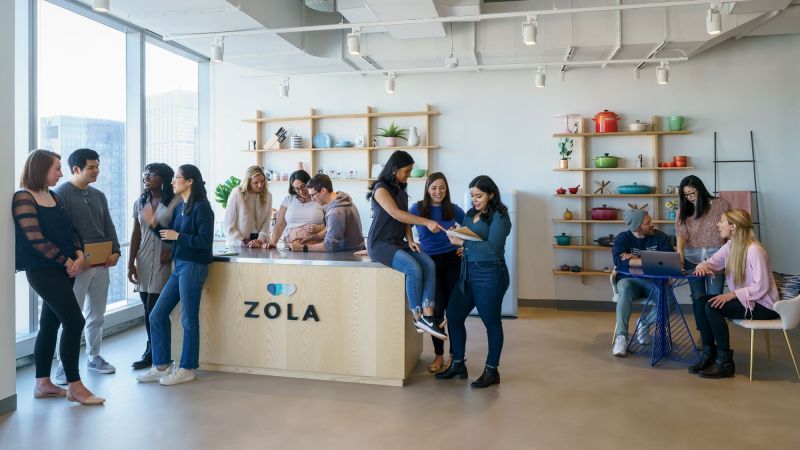 Diamonds may be forever, but so are the stressful memories that come with planning a couple’s big day. Zola promises to fix that. The New York–based company, which has raised $140 million since its 2013 launch, offers a host of wedding tools in one place, including registries, websites, invitations, and a soon-to-launch honeymoon-planning product. All that growth (headcount increased by 50 percent in 2019) required larger digs, so the startup moved into a new space in downtown Manhattan last year. Zola’s headquarters now boasts a registry product showroom, a wellness space, countless fresh flowers, and plenty of shared spaces where engineers, product managers, designers, and customer service reps connect to discuss their one shared goal: making wedding planning as delightful as the wedding itself.