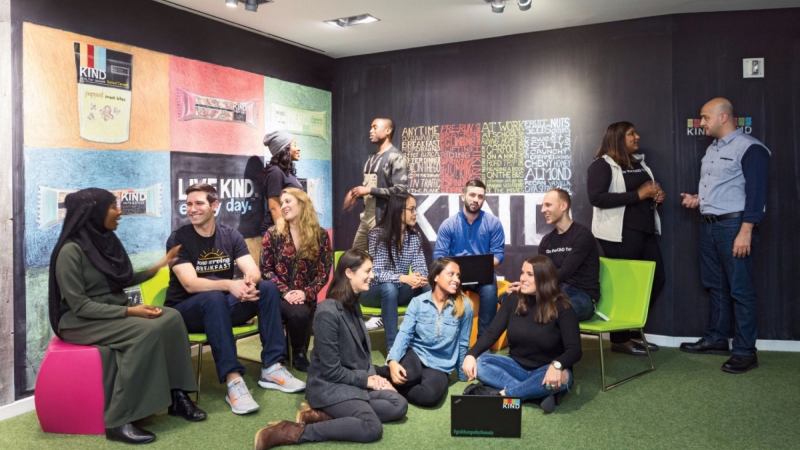 The most compelling thing about KIND’s Manhattan headquarters isn’t the Bar Bar, where staffers grab a lineup of free snack bars, but how the company got there at all. Founder Daniel Lubetzky, the son of a Holocaust survivor, says he was raised to believe in the power of kindness and the importance of human connection. This heritage shapes the company’s culture, social mission and philanthropic efforts (which have grown far beyond its for-profit business model). But you can feel it in the physical space, too, which is decorated in bright, vibrant colors and meant to be a nexus for collaboration and cooperation. Between meeting spaces, Lubetzky’s dad’s furniture adorns various offices.