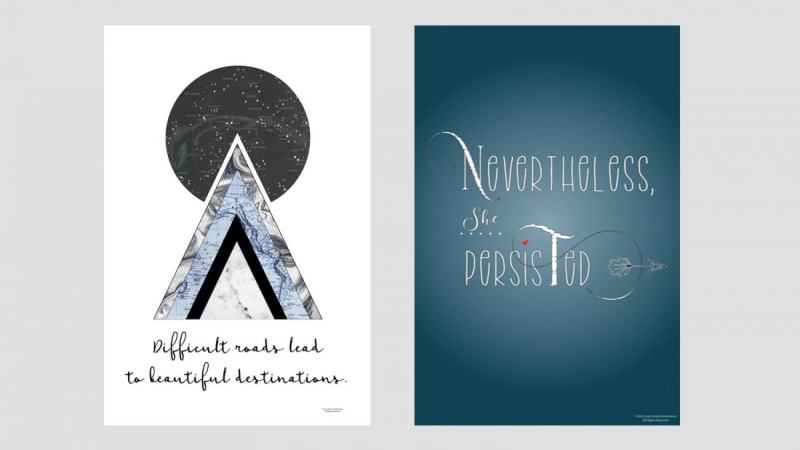 It wasn’t until Smith began creating artwork with a specific licensee in mind that she struck gold. Taking advantage of the fact that her art features inspirational quotes, she connected with a product supplier selling to Fortune 500 companies that want to reward and encourage their employees. The move worked: Smith was inspired to create works for that company specifically.